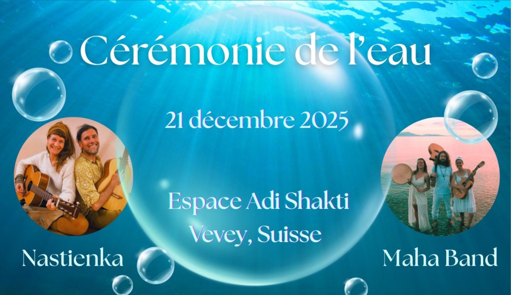 Le duo Nastienka sera de passage en Suisse pour partager son alchimie de voix et de compositions uniques ! Pour les découvrir c’est par ici: nastienka.com Et le groupe lausannois Maha Band nous a déjà offert leur musique lors de quelques sadhana. Nous nous réjouissons de les retrouver ! Pour les découvrir c’est par là: poissonblanc.ch